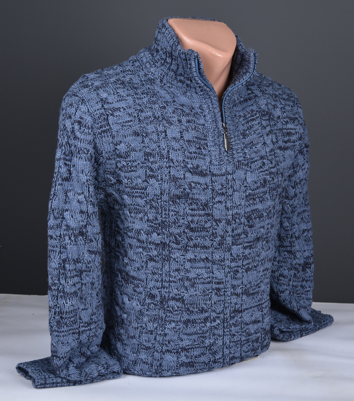 Чоловічий вовняний светр із коміром стійка на блискавці буде вдалим доповненням образу у стилі casual. Манжети, комір і низ кофти оформлені еластичною в'язаною гумкою, завдяки якій светр ідеально підходить до будь-якого силуету, залишаючись особливо комфортним. Светр створений з м'якої пряжі, добре тримає тепло, ідеально підходить для прохолодної осені та зими.